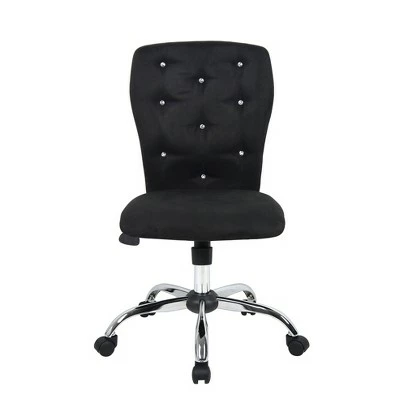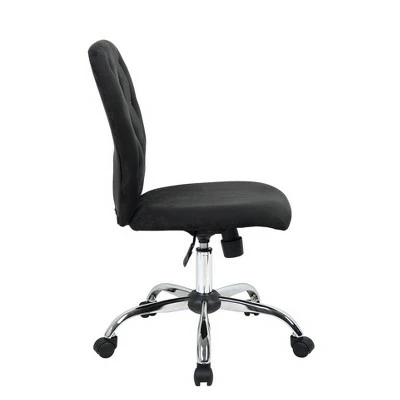 The Tiffany Modern Office Chair in black is made with microfiber material and also features a spring tilt mechanism. The spring tilt mechanism changes the angle of the entire seat relative to the floor and allows one to transfer some of the upper body weight to the backrest of the chair. It also boasts a sturdy 25 inch chrome base with 2 inch nylon dual wheel castors for a smooth roll and has a weight limit of 275 lbs. in addition to offering tilt tension, a pneumatic gas lift and an upright lock.