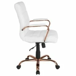 This office chair features a beautiful walnut bentwood frame with glossy black LeatherSoft upholstery. This chair is sure to make an impression and become the focal point in your office or home office. The mid-back design is a practical choice in a multitude of settings. A mid-back office chair offers support to the mid-to-upper back region. This chair is ideal for anyone who does a great deal of typing throughout the day and needs good back support. The contoured backrest provides firm back support. The waterfall front seat edge removes pressure from the lower legs and improves circulation. Chair easily swivels 360 degrees to get the maximum use of your workspace without strain. The pneumatic adjustment lever will allow you to easily adjust the seat to your desired height.