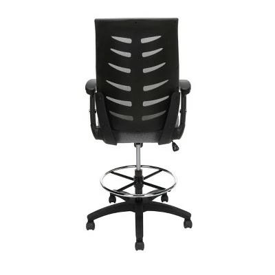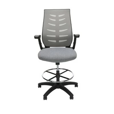 Sophistication and comfort are at the forefront in the design of the OFM Mid Back Mesh Drafting Chair, Drafting Stool, with Lumbar Support, in Gray. The stylishly ventilated design of the mesh back provides air circulation that keeps you cool all day. The conforming fabric seat with waterfall edge takes the pressure off of the back of your thighs, allowing you to sit comfortably for longer. This draft stool features integrated lumbar support for all-day back comfort. The drafting stool also features a metal footring to provide a resting spot, and support, for your feet. The flip up and height-adjustable arms provide a unique amount of flexibility as they can be adjusted for different users and moved out of the way as needed. Ergonomic features that allow further customization include center-tilt, upright tilt lock, tilt tension, and pneumatic seat height adjustment. This office chair has a five-star base that is molded from reinforced resin and has a 360-degree swivel. The chair measures 28.54″ D x 28.15″ W x 47.24 – 55.91″ H and holds users up to 275 lb. The computer chair is backed by the OFM 10-Year Limited Warranty.