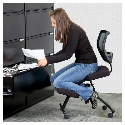 This ergonomic chair resembles the look of a conventional task chair, but with the inclusion of kneeling pads. You’ll be able to regain your body’s natural posture with this ergonomic kneeling chair with included back. Kneeling chairs sit you in a position to allow your diaphragm to move efficiently and promote better breathing and blood circulation. The frame is height adjustable to get into your preferred seat height. Use as your permanent office chair or in conjunction with a conventional task or executive office chair.