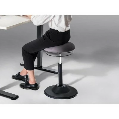Boost workplace health and productivity by adding an alternative way to sit while at work. Avoid sitting in the same position for most of the day with this dynamic stool that encourages a more active sitting position to help improve posture. It allows for movement and balance to keep leg and core muscles engaged while sitting. This stool is designed for use with standing desks. Use it as a regular stool at the low setting, or use it as a perch stool to lean or rest on while standing. This allows sit-stand desk users to take some load off their legs and feet when standing or sitting high. The stool has a non-slip, weighted base that supports the adjustable stem to allow it to tilt, rotate, and pivot. The air-lift piston mechanism provides quick height adjustments, from 19.9″ ~ 27.8″. The stool is designed to be used with both feet on the floor for balance and even weight support at all times.