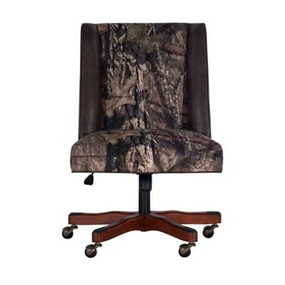 Add style, function, and masculinity to your office with the Mossy Oak Native Living Office Chair. The soft, plush frame features simple modern lines upholstered in a dark brown and mossy oak break-up country patterned fabric. A sturdy walnut wood base is set upon durable metal casters for easy maneuverability. An adjustable seat height ensures this chair works for a variety of table heights. Perfect for a home workspace or an added touch of style at the office.