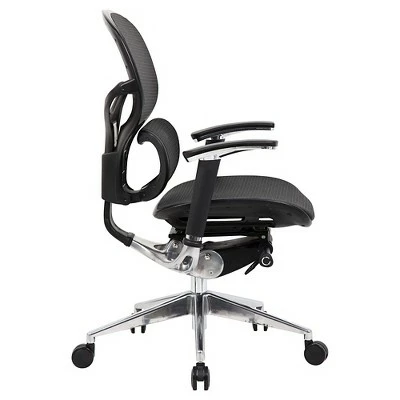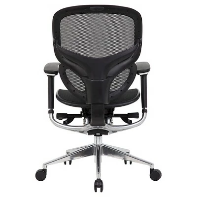 This ergonomic task chair features a contemporary mesh back that provides first-rate back support while preventing body heat and moisture accumulation. Its ratchet back height adjustment allows for perfect positioning of the back cushion for optimal lumbar support. There’s also an open mesh seat, two multi-directional armrests, and a tilt function that can be locked anywhere throughout the tilt range for maximum comfort. All of this ergonomic efficiency is increased by a 2 to 1 synchro-tilt mechanism and corresponding seat slider that facilitates easy depth adjustment.
