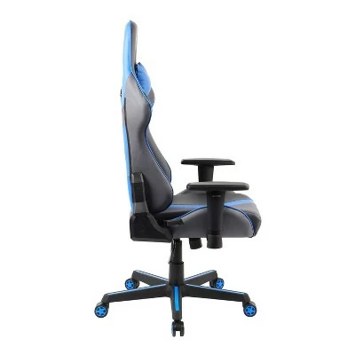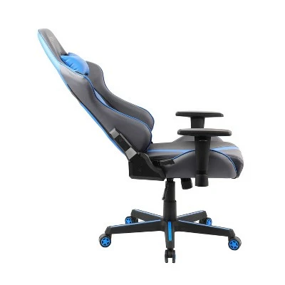 TechniSport introduces gaming chair especially designed keeping ergonomic style in mind to provide an extra comfort to enhance your gaming experience. The modern geometrical design made with long-lasting PU characterizes the seat high back with smartly fashioned adjustable padded armrests, neck pillow and lumbar support cushion. Along with its impressive design, it also features pneumatic seat height adjustment, 150 degree recline mechanism and tilt with tension control mechanism. This chair comes with two tone with striking blue accents across seat with heavy duty steel frame, matching durable nylon base and non-marking casters to complete the look. This chair supports the weight limit of 250lbs and comes with limited warranty of 2 year on parts and defects.