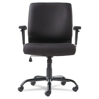 OIF Big And Tall Mid Back Swivel/Tilt Fabric Chair comes with fabric seat and back. The arms adjust or can also be removed for additional comfort. Built tough for extreme durability yet adds class to any environment. Classic styling specifically designed for the big and tall person; supports up to 450 lbs. Thickly cushioned seat and back provide complete support. Arms adjust for optimal placement or may be removed to suit your needs. Thickly cushioned seat and back provide complete support. Arms adjust for optimal placement or may be removed to suit your needs. Height adjustable arms for optimal arm placement. Black fabric upholstery. Arm Type: T-Arm. Tilt tension/tilt lock. Overall Dimensions: 40 1/8 – 43 3/4″H x 28 1/2″W x 27 3/8″D. Seat Dimensions: 23 1/2″W x 21 5/8″D. Weight capacity: Up to 450 lbs. Seat Height Minimum 19 1/4″; Seat Height Maximum 22 7/8″. Adjustable Arms This OIF big and tall fabric office chair comes with soft polyurethane T-arms that can be height-adjusted to fit your frame. You can also remove the arms to open up the area around your body. Hooded Casters The five-point base on this OIF big and tall fabric office chair features hooded casters that make moving the chair simple. The 2-inch wheels smoothly transport you across hardwood floors or low-pile carpets and easily turn when you need to change direction, so they give you easy access to all areas of your office. Cushioned Seat The thickly cushioned seat and back of this OIF big and tall fabric office chair provides plenty of cushy support for your entire body. The soft black fabric fits right into a contemporary office space, and the classic design gives off an impression of professionalism. Sold as 1 Each.