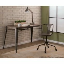 Get to work in the Oregon Task Chair by LumiSource. Industrial inspired, featuring a metal back and armrest, juxtaposed with a wood-finished seat. The Oregon Task Chair is height adjustable and has metal caster wheels for easy mobility. Available in a variety of finishes, pair with the Oregon Utility Table for the ultimate industrial farmhouse look.