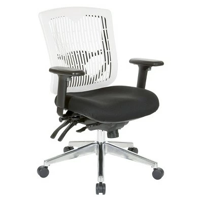 Work in comfort and style in the new Pro-Line II® Multi-Function Chair. Perfect for workers who spend extended periods of time at their work stations, this intelligently designed chair provides comfort and support to both your body and mind. The contoured plastic back with built in lumbar support, and high quality foam seat affords for hours of cozy seating, minimizing fatigue and alleviating pressure on the spine. The one touch pneumatic seating adjustments allow you to elevate to the perfect height while the deluxe Multi-function control with forward tilt lets you adjust the seat and back angles to help reduce fatigue in your back and thighs. Complete with height adjustable arms with soft PU pads and a Chrome base with dual wheel carpet casters that provide for effortless mobility across tile and carpet floors alike.