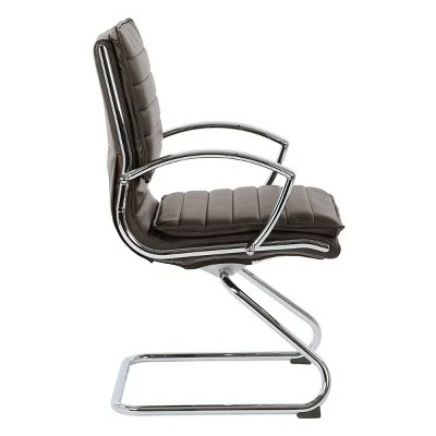 Strap in for a comfortable chair constructed in thick contoured faux leather chair. Adjustable tilt tension and locking tilt control puts you in charge of this chair’s functionalities and allows for comfortable use. Built-in lumbar support assures relaxing support during heavy work sessions. The base of the chair creates a sturdy and stable office chair that will exceed your expectations. Beautiful chrome finishes and loop arms set the presentation for the Guest Faux Leather Chair from Proline II.
