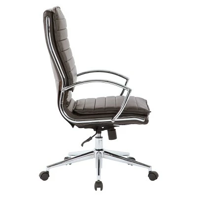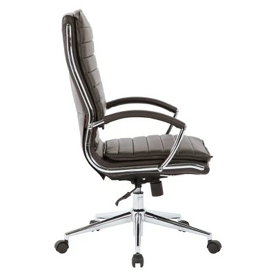Strap in for a comfortable chair constructed in thick contoured faux leather. Adjustable tilt tension and locking tilt control puts you in charge of this chair’s functionalities. Built-in lumbar support and one-touch pneumatic height adjustment assures relaxing support during heavy work sessions. Beautiful chrome finishes set the presentation for the High Back Manager’s Faux Leather Chair from OSP Home Furnishings.