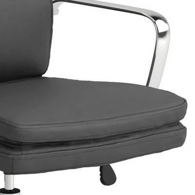 Beauty and comfort at its best, this office chair is here to not only attract with its presence but also provides the required comfort. The padded panel back with horizontal stitched design. The curved open metal armrests in chrome finish adds to the comfort and also makes it appear edgy.
