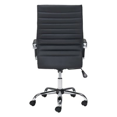 Get your work done in style with this classic armchair, showcasing faux leather upholstery and rolling design. Set it behind a mahogany desk for a traditional look.