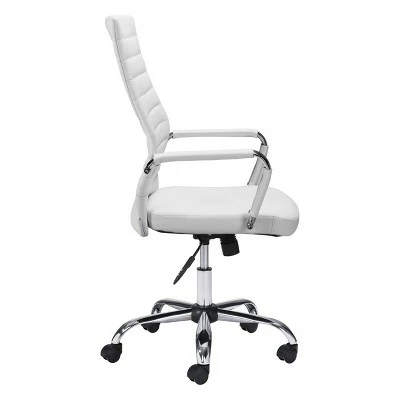 Get your work done in style with this classic armchair, showcasing faux leather upholstery and rolling design. Set it behind a mahogany desk for a traditional look.
