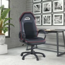 Ready for full-on game mode or just need to tackle emails at the office, the Lifestyle Solutions Portland Gaming Office Chair is ready for you. Featuring 360-degree swivel and smooth-gliding casters. The sturdy metal frame, high density foam cushioning and soft faux leather and polyester fabric provide you with the support and comfort you need for marathon game sessions.