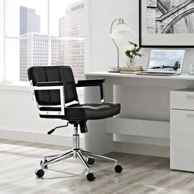 Make a striking statement with the Portray Mid Back Office Chair. Boldly designed with an impressive tiled design and sharp look, Portray boats comfortable dense foam padding and a stunning chrome steel frame and base. Featuring five dual wheel casters for enhanced stability and easy mobility over hardwood or carpeted surfaces, Portray is an exquisite example of what a modern office chair should be. Complete with tilt tension control and one-touch height adjustment, Portray is perfect for the progressive, inspired office setting.