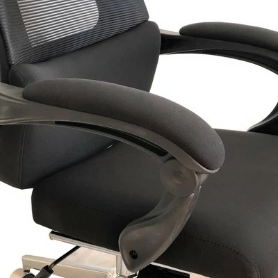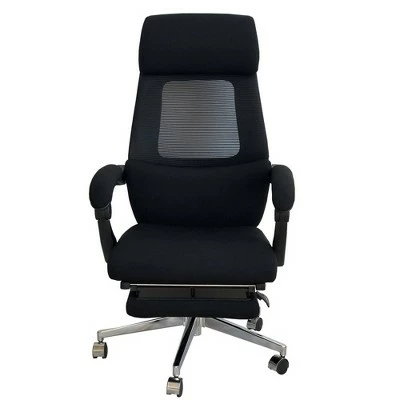 A bit of comfort, a bit of style, this contemporary style Adjustable Office Chair will be a perfect addition to your office or study space. Incorporated with a padded seat and mesh back with multi position lock mechanism, this piece of furniture is constructed from the combination of plywood and metal. The distinguishing yet appealing black color finish with chrome tone provides a complimenting and a ravishing touch to it. The 360 degree swivel and gas lift mechanism will ensure a greater degree of comfort while balancing your workload which sometimes becomes excruciating. It also comes with a seat height adjustability feature so that you can adjust the height of the seat according to your height and sit comfortably. The footrests offer comfortable lounging whilst doing your office work.