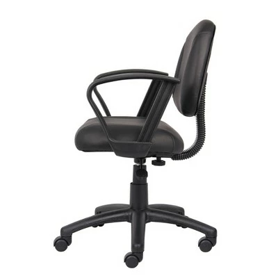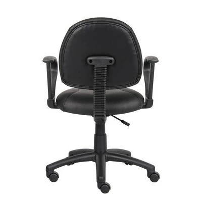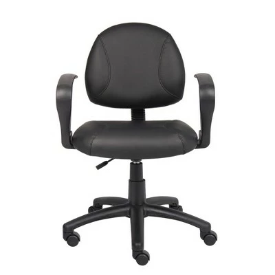 TheDeluxe Posture Chair is upholstered in Black LeatherPlus (leather and polyurethane), for added softness and durability. In addition, it has thick padded seat and back with built in lumbar support for extra comfort. It has an adjustable back depth that can be easily customized for your personal needs. The pneumatic adjustable gas lift allows for easy seat height adjustment, to help you find the personalized sitting style that suits you and your work environment. The five star nylon base allows for smooth movement and stability. The hooded double wheel casters make it easy to move and shift directions. The Loop Arms make for comfortable and natural arm rests.