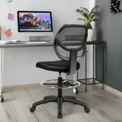 Costway Mesh Drafting Chair Mid Back Office Chair Adjustable Height w/Footrest Armless
