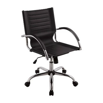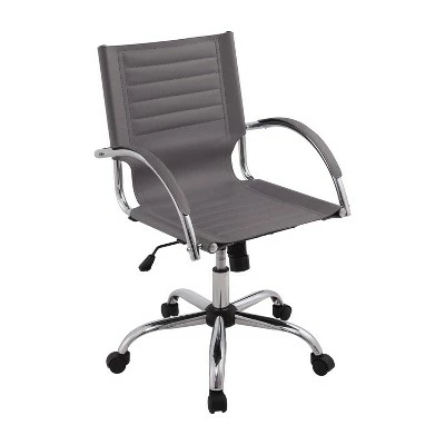 A combination of materials and tones come together to create a cutting-edge design with space-age comfort in this transitional office chair. Pneumatic height adjust feature allows you to find the height of your liking, and the multi-directional caster wheels gives it the easy mobility you love. It all comes together in an extremely attractive mix of leatherette and chrome to add a touch of cool to your office or home library.