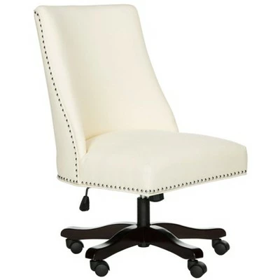 A study in style, this contemporary swivel office chair brings a light, fresh disposition to any workspace. Reminiscent of the atelier of a famous Connecticut-based designer, its graceful crème color, rich espresso finish and generous seat make work a breeze. The armless composition creates a more free and open air. This office chair by Safavieh is a charming addition to any modern, contemporary, or transitional room. With an easy to style cream color, it will roll right in.