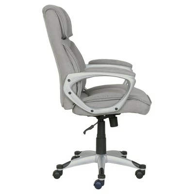 This Fabric Executive Chair from Serta is as comfortable as it is luxurious – upholstered in soft microfiber. This rolling office chair features a soft, pillowed headrest and plush layered body pillows which offer a serene and tranquil seating experience. The contoured lumbar provides exceptional support for the lower back, while the sculpted arms have pillow soft pads for added hand, wrist and forearm comfort. The waterfall seat edge is designed to reduce pressure on the back of the knee to aid in circulation and reduce fatigue. Smooth rolling multi-surface dual wheel casters provide easy access to your surrounding work area.