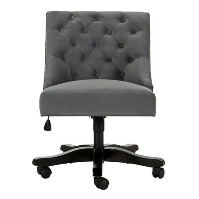 Posh and polished, this contemporary swivel office chair was inspired by the glamourous corporate headquarters of New York’s most prestigious fashion brand. Finished in espresso, its chic light crème upholstery is tufted for a timeless, elegant appeal. The armless composition creates a more free and open air. The SoHo Swivel Desk Chair by Safavieh is a charming addition to any modern, contemporary, or transitional room. It is available in multiple colors to best suit your personal tastes and decor.