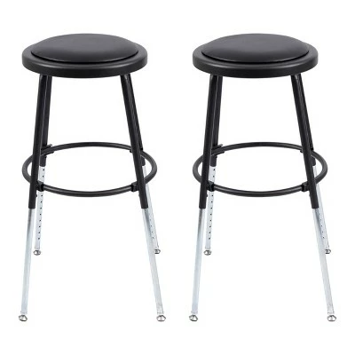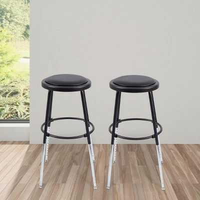 - Overall dimensions are 25″ D x 25″ W x 19″ to 31.8″ H; seat height range is 19″ to 31.8″ H (in 1″ increments); seat diameter is 14″; available as a single chair or 2-pack