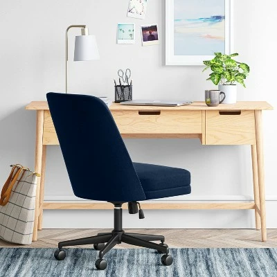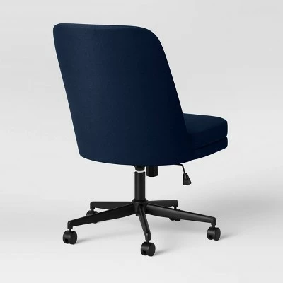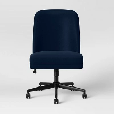 Add soft, velvety charm to your workspace with this Stardust Office Chair from Project 62™. Designed with navy blue velvet fabric, this upholstered office chair helps bring luxurious comfort to your modern space. The armless design with caster wheels offers easy movement whether you’re picking up a file from the nearby drawer or busy writing on the desk. And with the adjustable height, feature this armless office chair offers customizable comfort.