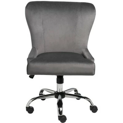 A modern gray finish fabric covers this contemporary office chair and makes this piece standout from the average. This office chair has an adjustable height to fit your level of seating comfort. The armless design is a sleek and updated look in an office or by a desk.