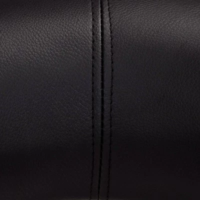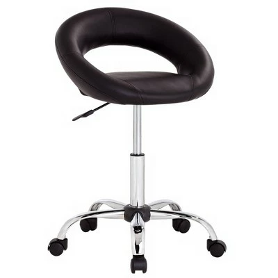 Get modern style and convenience with adjustable rolling office stool. With a black faux leather upholstery and chrome finish base, it offers a handsome contemporary look. A gas lift mechanism lets the height be easily adjusted, and the wheels allow for greater mobility. Perfect for an office space or game room.