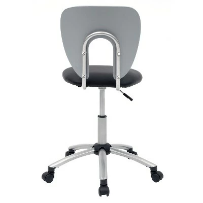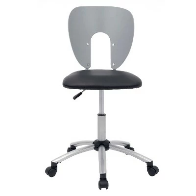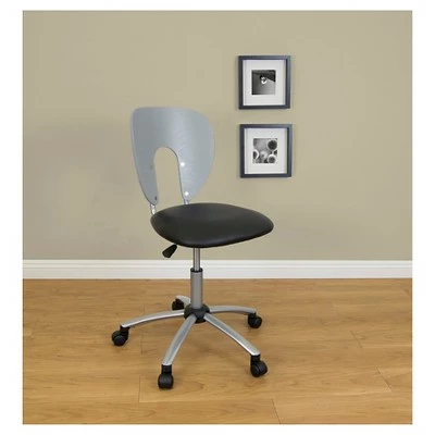 The unique contemporary design of the Futura / Vision Chair makes it a fashionable and functional option for the home or office. Its pneumatic seat sits on a five-star metal base and is adjustable in height (max 23”). 5 wheel casters allow for easy mobility. Meets/Exceeds ANSI/BIFMA industry standard. Available in Silver # 10052 or Pewter/Black #10657 .