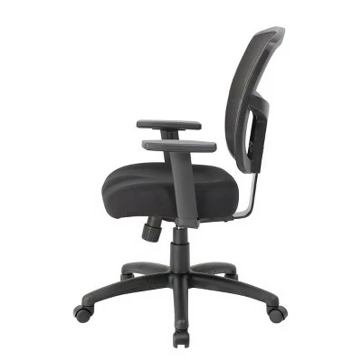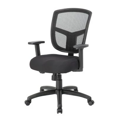 This Mesh Task Chair comes with an open breathable mesh fabric that will keep you cool and comfortable during extended periods of work. The contoured 4” high density foam seat cushion provides added comfort. The height adjustable arms provide comfortable and versatile arm rests that can suit your personal preferences. The synchro-tilt mechanism moves the back and seat in unison at a 2:1 ratio and locks in any position throughout the tilt range. The adjustable tilt tension control knob, which is located under the seat, allows you to customize the tension of the tilt. The pneumatic adjustable gas lift allows for easy seat height adjustment, to help you find the personalized sitting style that suits you and your work environment. The large 27’’ black nylon base provides added stability to the chair. The hooded double wheel casters make it easy to move and shift directions.