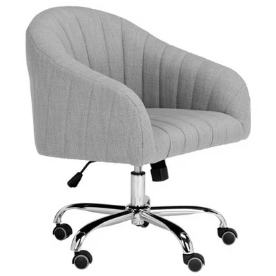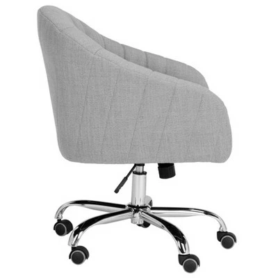 The office of a legendary Hollywood agent was the inspiration for this linen chrome leg swivel office chair. Sculpted with gentle curves, the Themis Swivel Office Chair has upholstery brings instant glamour to the workplace. Designers love its sleek casters and swivel mechanism. Its bold or neutral color makes it easy to style and a modern choice for the office. The Themis Swivel Office Chair requires assembly, is made of iron and holds up to 275 pounds.