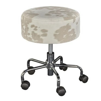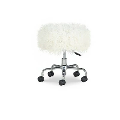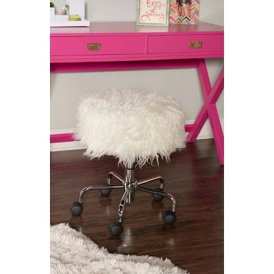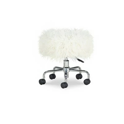 - Faux-fur rolling stool design is glamorous and functional