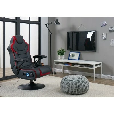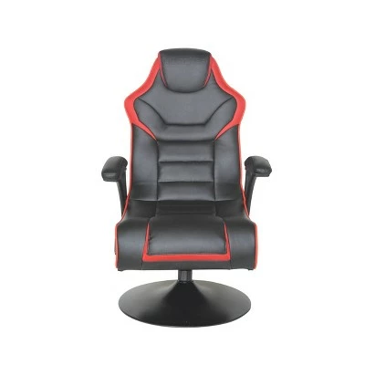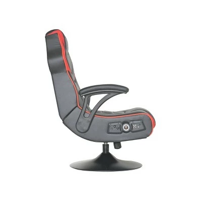 The Torque 2.1 wireless gaming chair is one of the latest designs in X Rocker’s console gaming collection. With a red and black faux leather finish, an embossed headrest, deeply padded armrests, a foldable backrest and a matte black steel pedestal base, this chair is sure to amp up any gaming space. The chair’s immersive vibration and headrest mounted speakers are easily controlled with the user-facing control panel on the side of the seat.