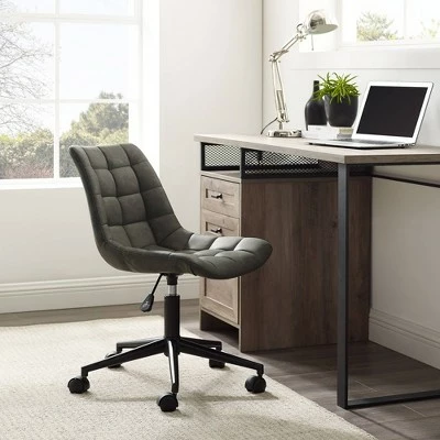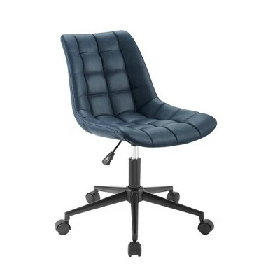 Upgrade your home office aesthetic with Saracina Home’s Tufted Armless Swivel Task Chair. The tufted faux leather seat lends a modern texture to your workspace. You will have the mobility to work most comfortably thanks to the adjustable height, swivel base, and rolling caster wheels. When it’s time to call it a day, the armless, small-space friendly design will slide conveniently under your desk until your next craft session or work day.