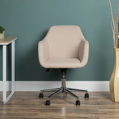 The Essentials by OFM seating collection is where quality meets value. The ESS-2085 office chair features a luxurious upholstered seat and back for an upscale look and feel, making it a smart and stylish solution for any application. The plush fabric back and seat are designed to provide total body support. The chair offers simple and intuitive controls such as pneumatic seat height adjustment and 360 degree swivel for added customizability and comfort. The padded arms provide additional upper body support for your guests as they wait. The comfort, stylish look, and price point of this chair make it a perfect addition to the office, lobby, or conference room. This chair meets or exceeds industry standards for safety and durability, and is backed by our Essentials by OFM Limited warranty.