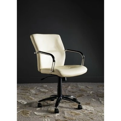 Executive sweet: The elegant and hard-working Vikki Desk Chair is headed for a corner office. With tall back and streamlined curvy arms, this comfy chair is adjustable and moveable with plastic wheels. Upholstered with PVC faux leather for durability and easy care and foam fill material for additional comfort. This desk chair is able to support up to three hundred pounds. The Vikki desk chair is the perfect addition for Contemporary or Modern style work places.