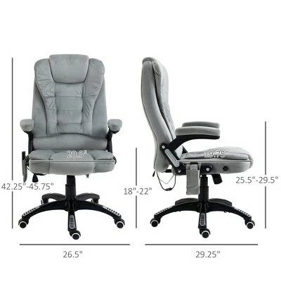 After a long day, you can sit down, relax, and let the massage chair recliner give you a thorough massage, including a headrest massage. The heating function promotes blood circulation and enhances the massage effect. There are 6 massage points in total, The recliner is 130 degrees reclinable with adjustable seat height. Just choose your favorite angle and height and enjoy the comfort. Its ergonomic design will ensure you a comfortable experience. We use fabric to provide breathable comfort and thick sponges that offer soft comfort to your body, including the armrests. If you want this office chair for quick and smooth movement, you’ll like its universal wheels which can be rotated 360 degrees. If you’re looking for a comfortable chair that will give you a massage and last all day, buy our HOMCOM computer massage chair today.