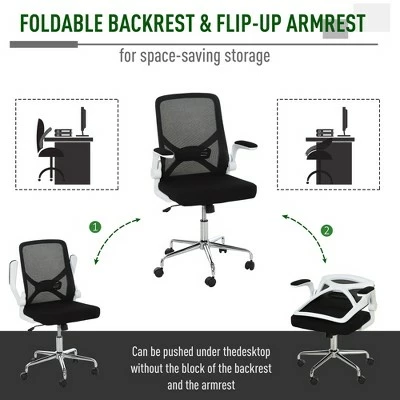 - FLEXIBLE OFFICE CHAIR: With a folding backrest and a flip-up armrest, this computer chair is convenient to be pushed under the desk without problem! With a folding height of 26.5″, this executive chair is suitable for most regular-sized desks.