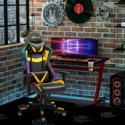 - EXTRA SUPPORT: This LED office chair comes with a pillow and lower lumbar support cushion to relieve neck and back strain for long hours of game time.