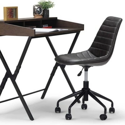 Modern design meets comfort with the Wicks Swivel Office Chair. Sit and relax in cushioned comfort with the curved padded seat and back. The adjustable seat, swivel and caster wheels make the Wicks Office Chair easy to customize to your particular needs. This chair is sure to make an impression and become the focal point in your home office.