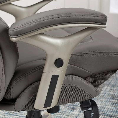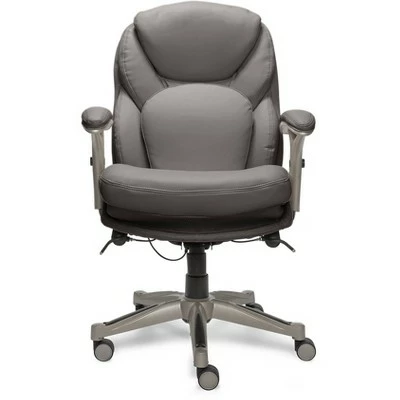 Experience relief with the Works Executive Office Chair with Back in Motion Technology from Serta. This chair has a durable build and is packed with features like adjustable height and tilt with armrest-level controls. The thick, ergonomically contoured upholstery features Back in Motion Technology designed to pivot the low back forward and encourage a positive neutral position for long-term comfort.