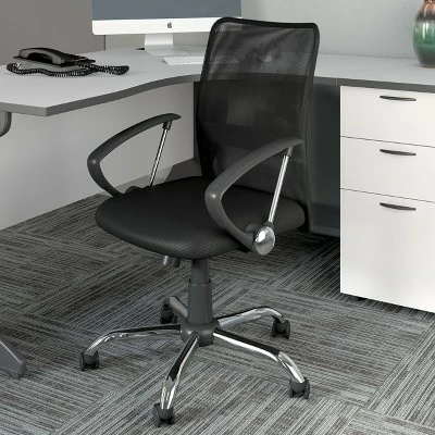 Style yourself a modern, comfortable workspace with the Contoured Mesh-Back Office Chair from Corliving. Foam filling and a mesh back makes for a comfy office chair, and the metal chrome base adds sleek detail. This swivel office chair makes it easy to move around in your home office with casters, and the adjustable tilt-tension and height lets you find a perfectly comfortable seating position.