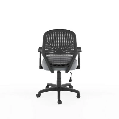 The mesh back office chair is a great addition to any workspace or office. An open mesh curved back design creates a breathable, well-ventilated backrest with added lumbar support and will help you keep you comfortable during your workday. The breathable padded seat is thick, resilient, and constructed of high-quality foam and breathable mesh cloth. The gas lift and tilting capabilities make it easier to angle and raise or lower the seat for the perfect position. Finishing the look and functionality, the casters provide great mobility, suitable for hard floors, carpet, and more!
